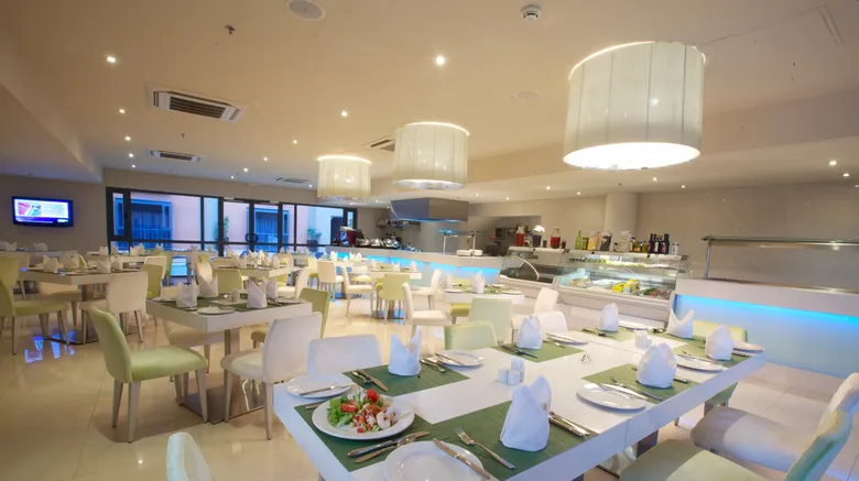 Dining options include a buffet breakfast each morning and an à la carte dinner service in the evening, providing a blend of international cuisine and local flavours.
